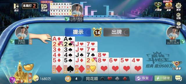 巅峰君小窍门:手里有 3 和 A,宁愿进贡 A,也别贡 3!3 看着小,组顺子贼好用;A 送出去,对手不一定马上就能用上。碰到那种打得特别猛、特别冲的对手,你还能故意给他一张看起来普通、实则影响他牌型的牌,让他猜不透你,自己乱了节奏。