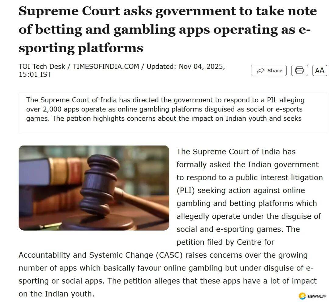 另一个例子是印度。8月19日,印度联邦内阁批准了《2025年网络游戏推广与监管法案》草案,计划在本国内全面禁止“真金游戏”(更详细内容,可点击跳转:真金游戏真要“凉凉”了?印度计划全面禁止,博彩、棋牌、电竞类真金玩法均受限!)。8月22日,印度总统签署了这项法律,从立法角度正式切断了“真金游戏”在本国的生态。