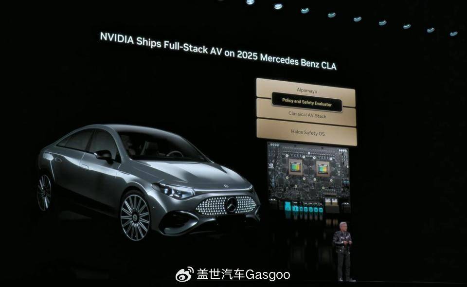 黄仁勋透露,首款搭载英伟达完整自动驾驶技术栈的梅赛德斯-奔驰CLA车型将于2026年第一季度在美国上路。