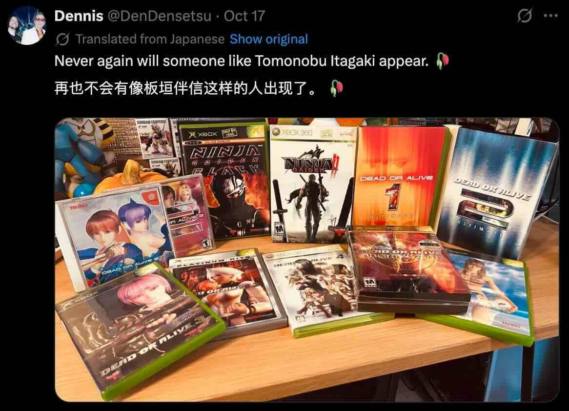 2025年10月16日,游戏界传奇制作人板垣伴信的亲友通过其个人Facebook账户发布了他预先写好的告别信,宣告其逝世,享年 58 岁。这则消息随后由板垣生前的挚友、BitSummit联合创始人詹姆斯·米尔克在Bluesky等社交平台上证实,板垣曾领导的Team NINJA工作室官方账号也迅速发布悼文,表示深切哀悼。与此同时,多位业界知名人士,包括曾与板垣既有竞争又有共鸣的《铁拳》系列制作人原田胜弘,以及《任天堂明星大乱斗》系列总监樱井政博,也纷纷在社交媒体上表达震惊与追思之情。