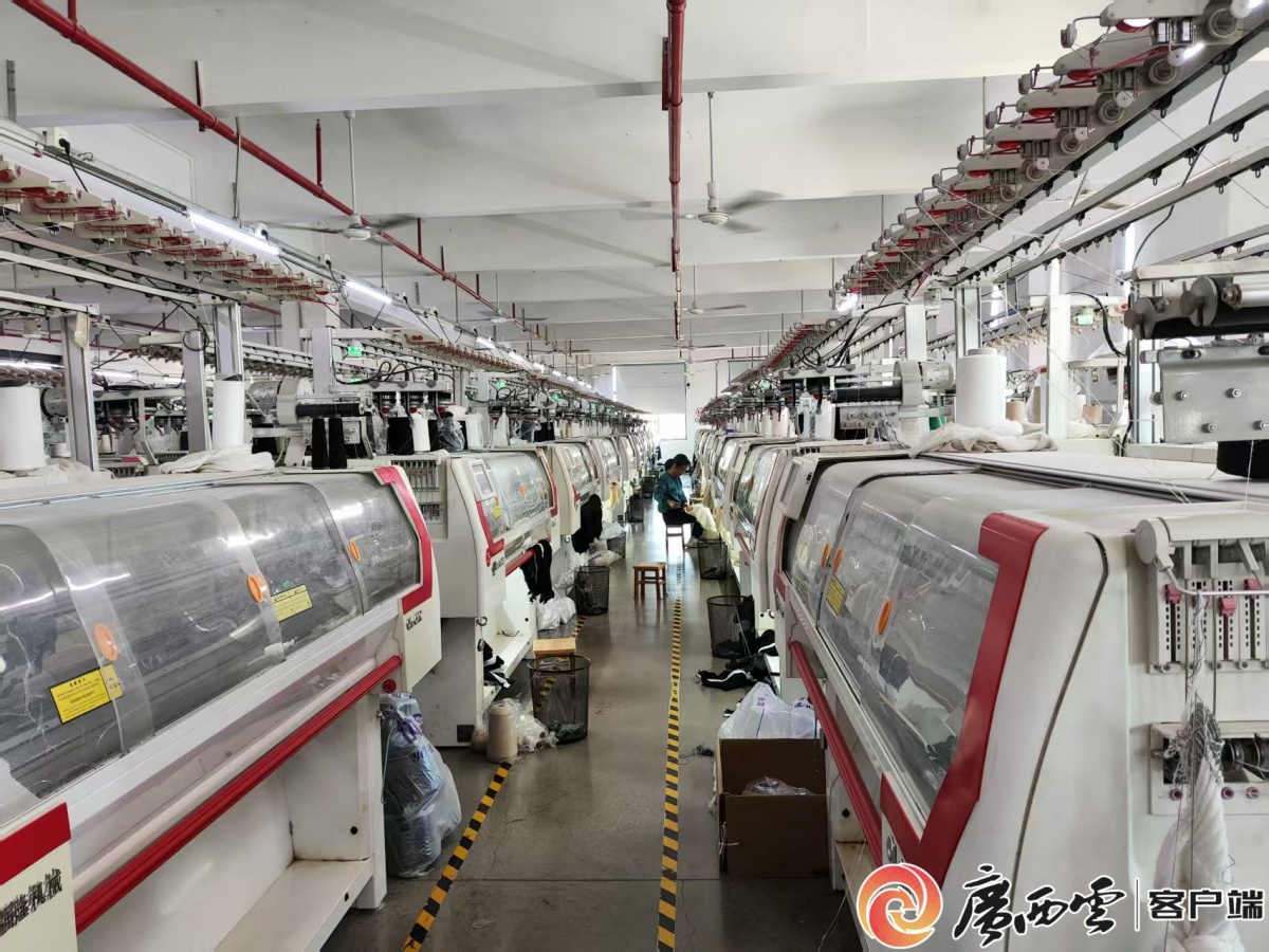 1月7日,位于平南县大成绿色生态园的广西中健运动休闲服饰有限公司生产车间一派繁忙。数控自动裁剪机床精准切割,智能吊挂系统流转有序,工人们手法娴熟,缝制、整烫、质检、包装环节一气呵成。