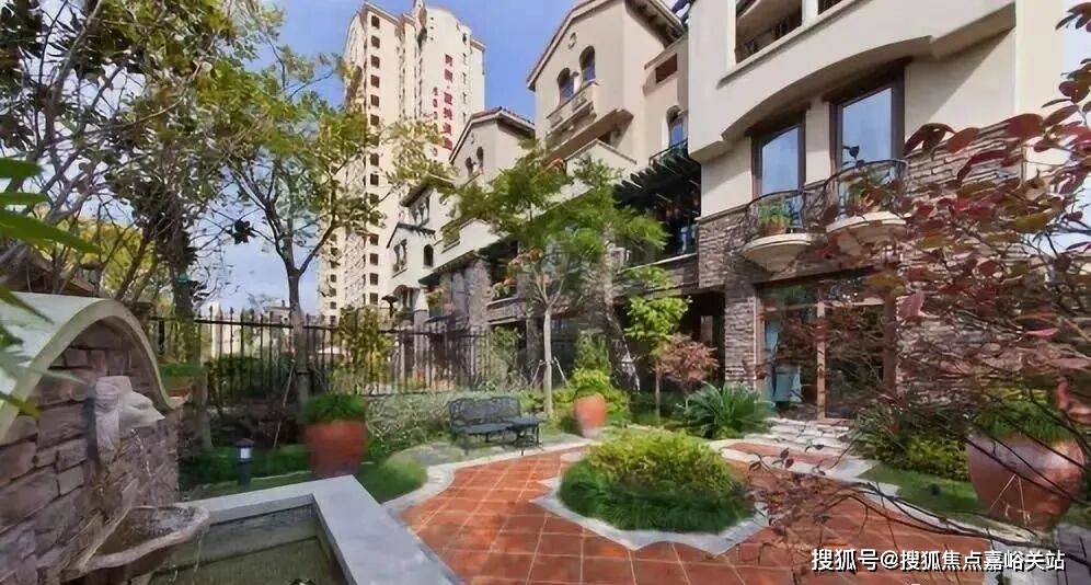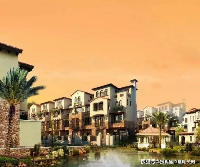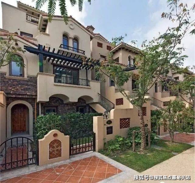 【同润•蓝美俊庭】采用南加州的建筑风格,外立面采用文化石和暖黄色涂料,搭配红色的筒瓦、烟囱、铁艺栏杆等建筑,尽现南加州原乡风情。