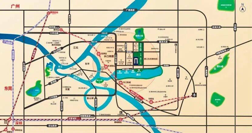 三高铁:赣深高铁,广汕高铁,厦深高铁三城轨:莞惠城轨,深惠城轨,惠州地铁3号线 成熟配套:三大商圈环绕,满足娱乐需求。