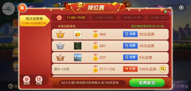 棋牌游戏大全,棋牌游戏app,棋牌游戏平台,棋牌游戏赌博,棋牌娱乐,棋牌娱乐平台,棋牌论坛,棋牌,开元棋牌,棋牌游戏有哪些,斗地主,扑克游戏,麻将,德州扑克,牛牛,麻将糊了,掼蛋,炸金花,掼蛋技巧,掼蛋口诀,抢庄牛牛,十点半,龙虎斗,21点,贵阳捉鸡麻将,牌九点击“卡五星排位赛”进入报名界面,每天的比赛时间为:11:00~13:00 13:00~14:00 19:00~21:00 21:00~22:00,比赛时间段还可以在这个界面里看到排名情况,如下图